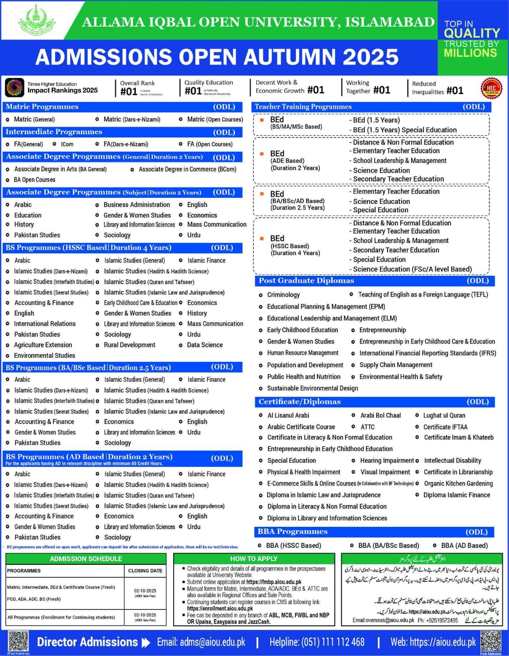 AIOU Allama Iqbal Open University Admissions Autumn 2025 AIOU Admissions Open Autumn 2025: Top Global Rank in Quality Education AIOU Admissions Open Autumn 2025: Top Global Rank in Quality Education (SDG 4) Are you looking for a globally recognized, **HEC-approved** university that prioritizes **QUALITY** and accessibility? The **ALLAMA IQBAL OPEN UNIVERSITY, ISLAMABAD** has confirmed its …